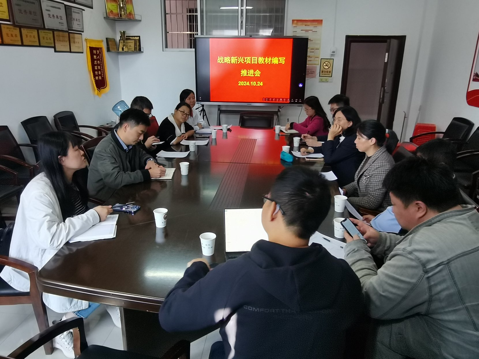 10月24日上午,为进一步加快推进战略性新兴领域教材编写,保障教材编写进度与编写质量,战略性新兴领域教材编写工作推进会在学院506会议室召开。各教材校内主编、团队编写人员、教务处周凤莺科长、科学出版社刘丹副编审及智慧树公司相关人员等10余人参加。会议由黄超副院长主持。