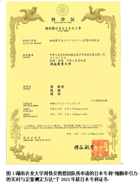 3、Tiean Zhou,Lun Xiong,Zhen Zhou,Jingyuan Huang,Haibo Shen,Dongqin Bao,Fushen Huang,Kebin Wu,Weisong Pan,Jia Zhao,Bin Hong,Real-time and quantitative measurement method for cell traction force,US20190317050A1 (US patent application publication).