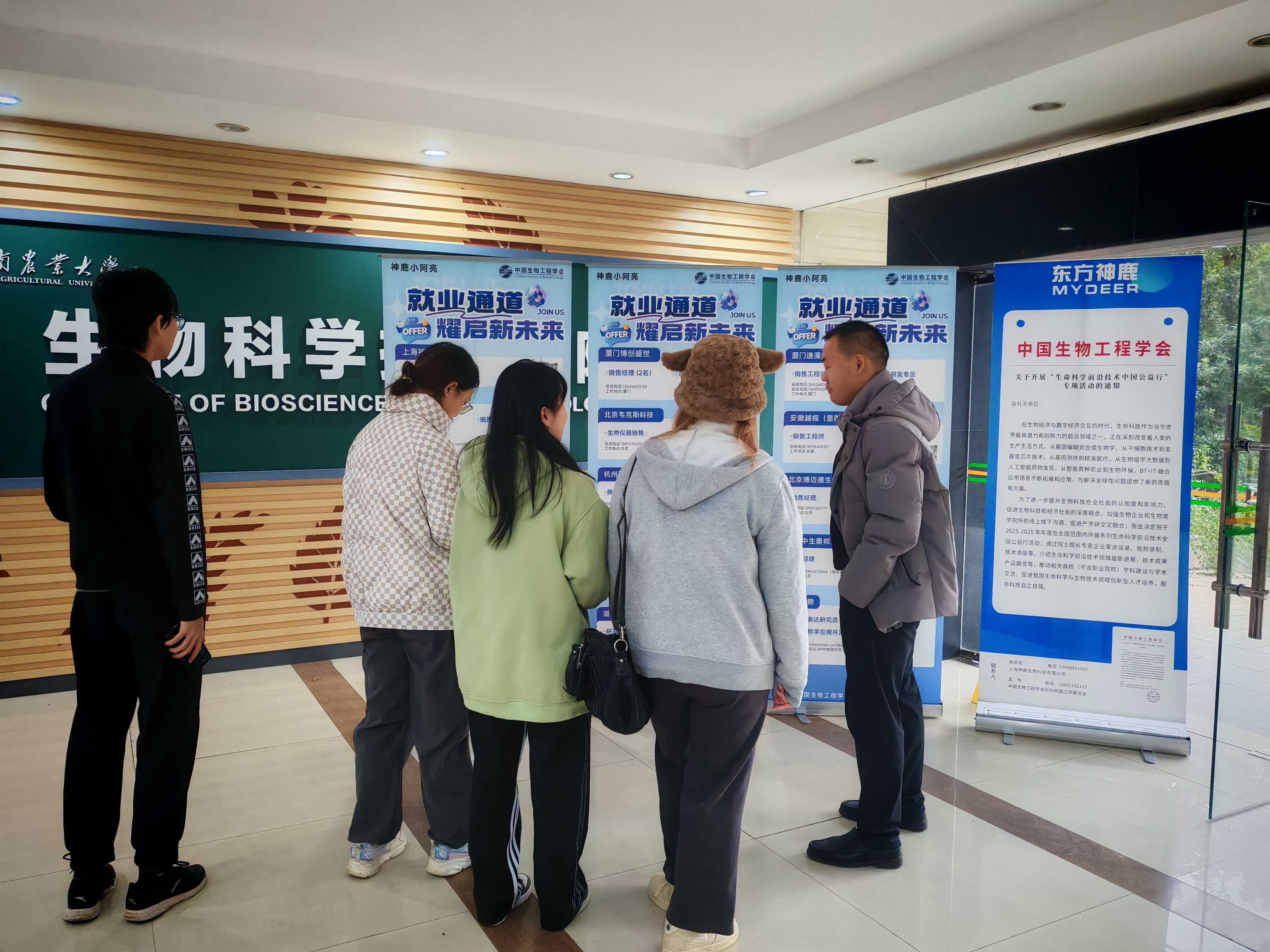 11月17日下午三点,bv伟德国际体育官方网站在第十一教学南一楼成功举办“探索生命密码 链接未来职场”专场双选会。此次活动由学院联合中国生物工程学会科普中国工作委员会组织,模基生物、铂尚生物等20余家生物科技企业齐聚现场,释放超100个就业、实习岗位,供需双方互动热络,求职氛围浓厚。