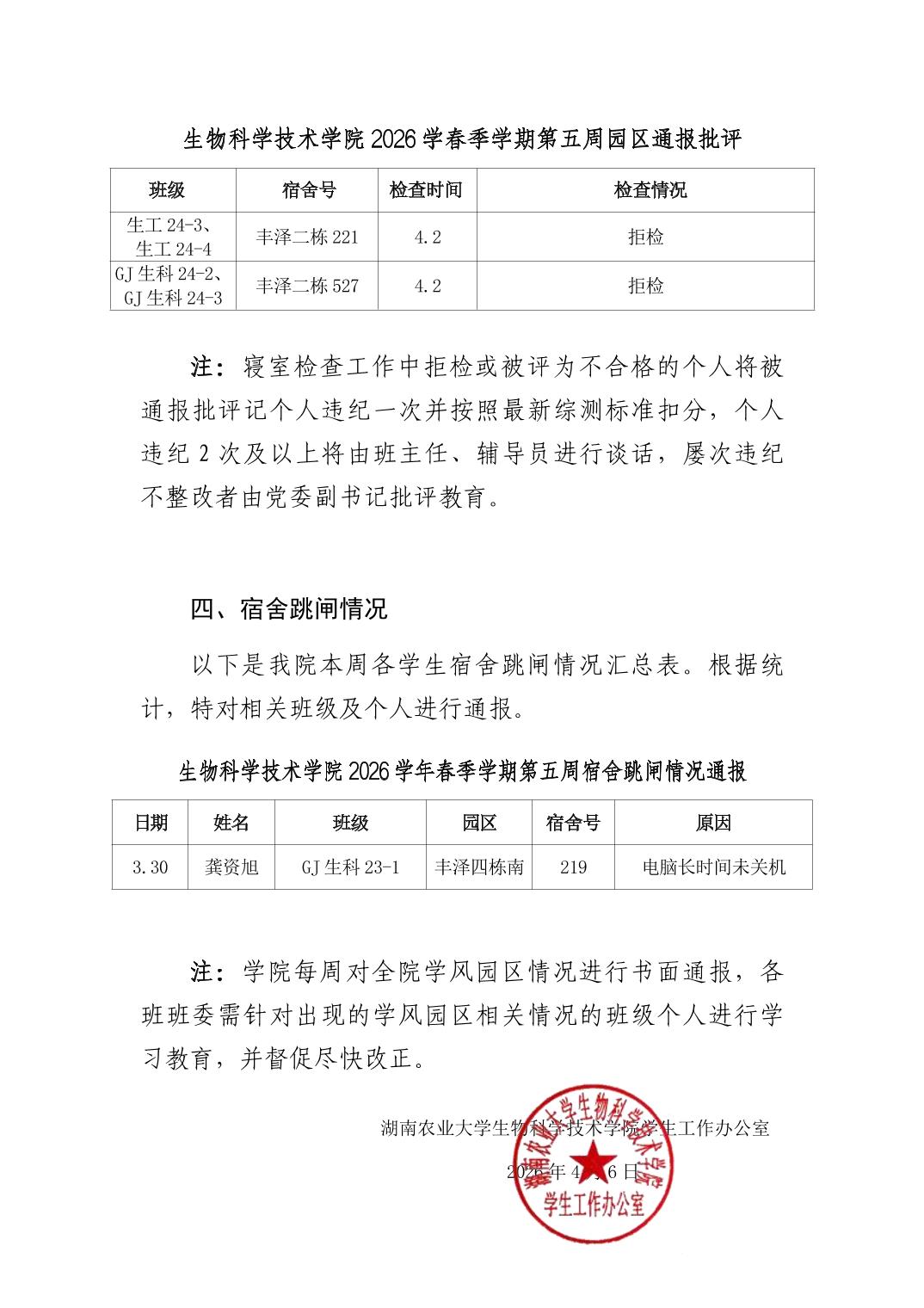 2026年春季学期bv伟德国际体育官方网站第5周日管通报