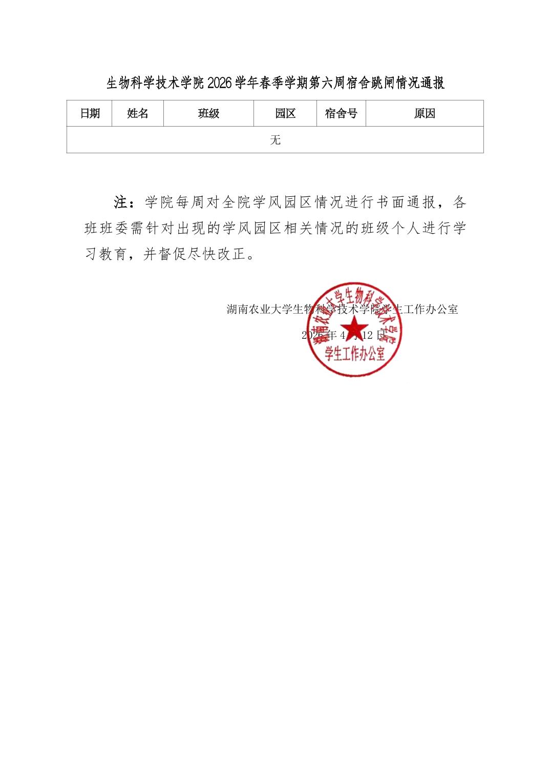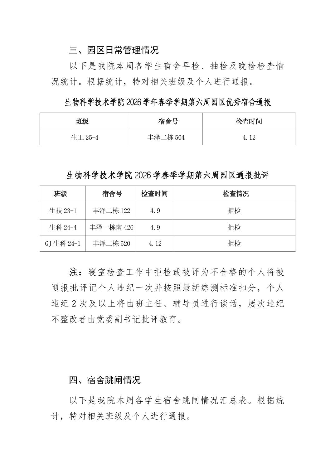 2026年春季学期bv伟德国际体育官方网站第6周日管通报