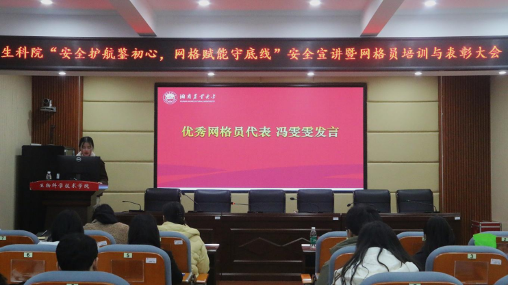 为进一步提升网格员的专业素养和实操能力,大会设置了专题宣讲与培训环节。彭晓老师带来心理安全专题宣讲,深入浅出地讲解了心理危机识别、心理疏导技巧和自我调节方法,为网格员开展网格内同学心理关怀工作筑牢理论基础。胡倩芳老师围绕宿舍安全与网络安全展开宣讲,结合校园实际案例,细致讲解宿舍安全规范、隐患排查要点及网络诈骗防范技巧,让网格员们掌握了实用的安全防护知识。随后,解李帅老师以《坚守网格责任・护航同门成长》为题开展专题培训,指导网格员们进一步明确工作职责、规范工作流程,提升网格工作整体成效。